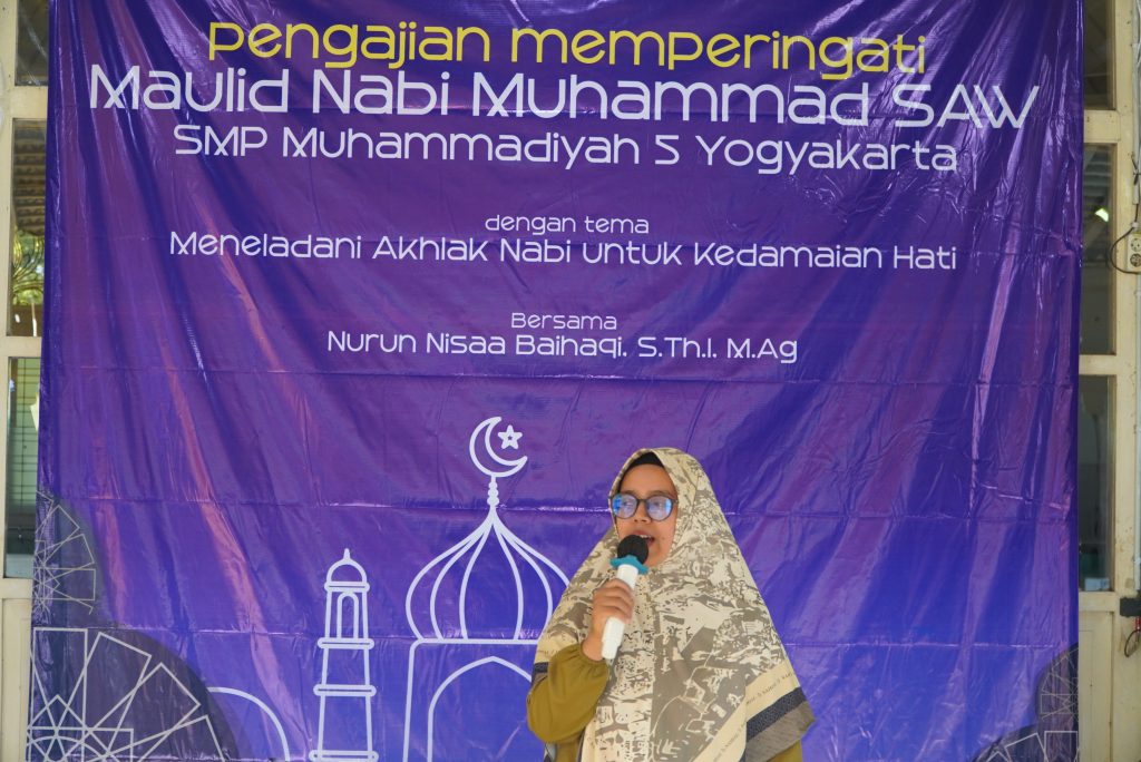 Dalam rangka memperingati Maulid Nabi Muhammad SAW 1447 H, SMP Muhammadiyah 5 Yogyakarta menyelenggarakan kegiatan pengajian dan peringatan Maulid Nabi yang diikuti oleh seluruh siswa, guru, dan karyawan sekolah. Kegiatan ini bertujuan untuk menumbuhkan kecintaan kepada Rasulullah SAW serta meneladani akhlak mulia beliau dalam kehidupan sehari-hari.