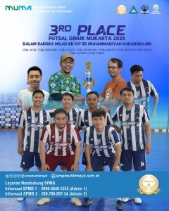 Selamat kepada Tim Futsal Ginuk SMP Muhammadiyah 5 Yogyakarta yang berhasil meraih Juara 3 dalam turnamen futsal memperingati Milad SD Muhammadiyah Karangkajen (SD Mukarta) 2025 🎉